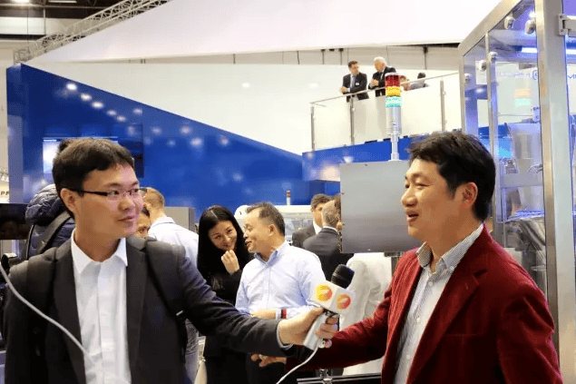 高管们也和Romaco销售团队一起向来自众多国家的客商推介产品,尤其是也来了不少中国客商,盛况也吸引了众多媒体的访问和报道。